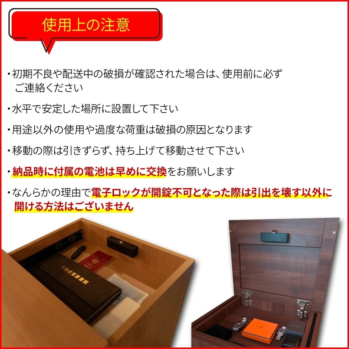 ・なんらかの理由で電子ロックが開錠不可となった際は引出を壊す以外に開ける方法はございません