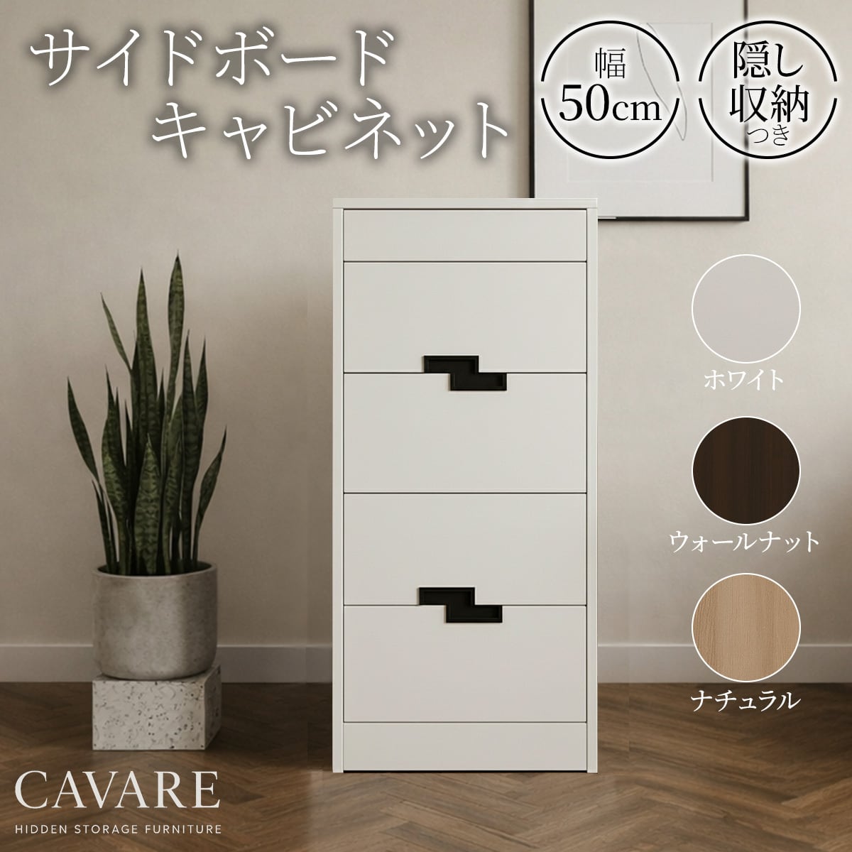 CAVARE サイドボード 003 キャビネット大 リビングボード 幅50cm隠し収納 電子ロック シークレット 家具 からくり 家具 防犯家具